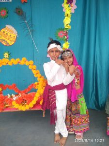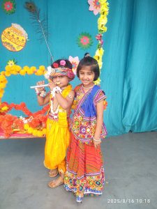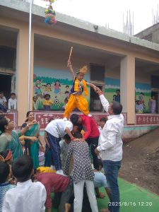 विद्यार्थ्यांनीही या कार्यक्रमात जोशात सहभाग घेतला. १ ली ते ४ थीच्या विद्यार्थ्यांनी श्रीकृष्णावर आधारित सुंदर गाणी व गवळणी सादर करून प्रेक्षकांची मने जिंकली. ५ वी ते ८ वीच्या विद्यार्थ्यांनी श्रीकृष्णाच्या बाललीला व दहीहंडीवरील कथा रंगवून सांगितल्या. इयत्ता दुसरीच्या विद्यार्थ्यांचे नृत्य सादरीकरण वैशाली मॅडम, जागृती मॅडम यांनी केले. दहीहंडी फोडण्याचा क्षण अतिशय थरारक ठरला. “गोविंदा आला रे”च्या गजरात विद्यार्थ्यांनी मानवी पिरॅमिड रचून दहीहंडी फोडली. हांडी फुटताच ताक, चॉकलेट मुरमुरे,लोणी व फुलांचा वर्षाव झाला आणि संपूर्ण शाळा आनंदात दुमदुमली.