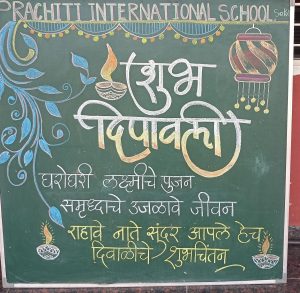 शाळेच्या प्रवेशद्वारावर स्नेहा साळवे, श्री. तुषार सूर्यवंशी आणि श्री. कुणाल देवरे सव्वा अश्विनी खैरनार यांनी दिव्यांच्या साह्याने “शुभ दीपावली” हे सुंदर अक्षररूप सजावट करून सर्वांचे लक्ष वेधून घेतले.