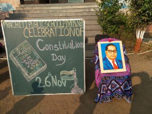 पिंपळनेर: प्रचिती पब्लिक स्कूल येथे आज दि २६ नोव्हेंबर रोजी ‘संविधान दिवस’ साजरा कण्यात आला. आज देशभरात संविधान दिन उत्साहात साजरा करण्यात आला. १९४९ साली यांच दिवशी भारतच्या संविधान सभाने संविधान स्वीकारले होते. त्या ऐतिहासिक घटनेच्या स्मरणार्थ दर वर्षी २६ नोव्हेंबर ‘संविधान दिवस’ म्हणून पाळला जातो.