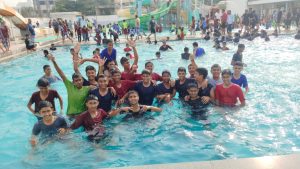 शिरपूर वॉटर पार्कमध्ये विद्यार्थ्यांनी विविध राइड्स, वेव्ह पूल, वॉटर स्लाइड्स, मल्टी-राइड झोन आणि रेन डान्सचा मनसोक्त आनंद घेतला.