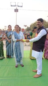 ‘खेळ पैठणीचा’ हा कार्यक्रम प्रसिद्ध अभिनेते श्री. विलासकुमार शिरसाठ यांनी अत्यंत उत्साहात, विनोदी शैलीत व प्रभावी पद्धतीने खेळवला. त्यांच्या सादरीकरणामुळे महिलांनी उत्स्फूर्त प्रतिसाद देत कार्यक्रमाचा मनमुराद आनंद घेतला.