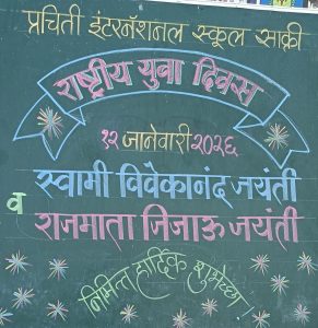 साक्री : येथील प्रचिती इंटरनॅशनल स्कूल अँड ज्युनिअर कॉलेज येथे स्वामी विवेकानंद यांच्या जयंतीनिमित्त युवादिन तसेच राजमाता जिजाऊ यांच्या जयंतीनिमित्त विविध कार्यक्रमांचे आयोजन करण्यात आले.