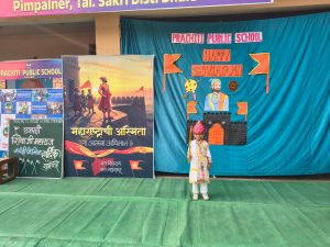 पिंपळनेर : दिनांक 19 फेब्रुवारी रोजी प्रचिती पब्लिक स्कूल येथे 396 शिवजयंती मोठ्या उत्साहात व भक्ती भावाने साजरी करण्यात आली. शाळेच्या प्रांगणात शिवाजी महाराजांच्या प्रतिमेची आकर्षक सजावट भगवा ध्वज आणि घोषणांमुळे संपूर्ण वातावरण देशभक्तीने भारावून गेले होते कार्यक्रमाची सुरुवात दीप प्रज्वलन व शिवाजी महाराजांच्या प्रतिमेस पुष्पहार अर्पण करून झाली त्यानंतर विद्यार्थ्यांनी व शिक्षकांनी शिवाजी महाराजांच्या जीवनावर आधारित प्रभावी भाषणे सादर केली तसेच काही विद्यार्थ्यांनी शिवाजी महाराज राजमाता जिजाऊ यांच्या वेशभूषा करून कार्यक्रमाची शोभा वाढविली.