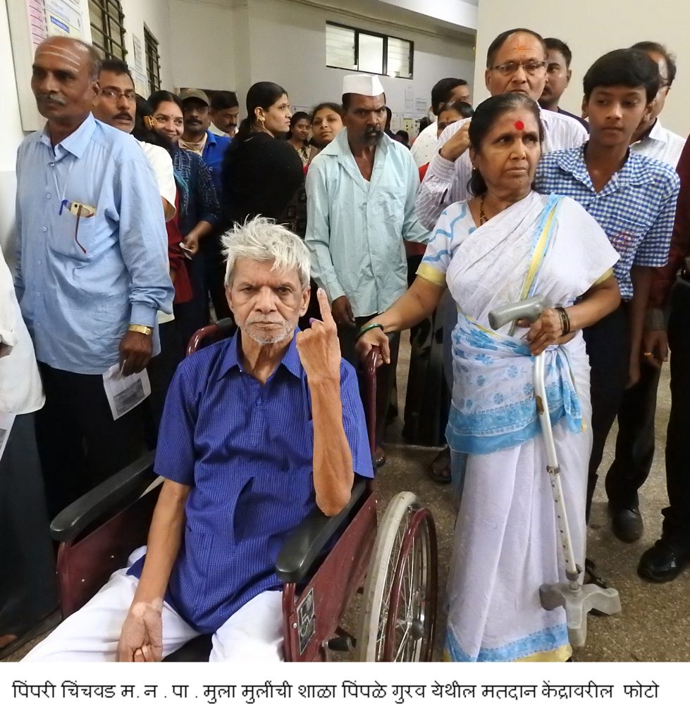 पिंपरी चिंचवड – पिंपरी विधानसभा मतदार संघात दिव्यांग मतदारांसाठी ने-आण करण्याची तसेच मतदान केंद्रापर्यत सहाय्यता करण्याची सोय उपलब्ध करण्यात आलेली होती. त्यामुळे दिव्यांग मतदारांमध्ये मतदानाचा उत्साह दिसून येत होता. महाराष्ट्र राज्याचे मुख्य निवडणुक अधिकारी यांनी या निवडणुकीसाठी दिव्यांग मतदारांसाठी तयार केलेल्या अॅपद्वारे दिव्यांग मतदारांना घरबसल्या मतदानाकरीता मतदार केद्राची माहिती,मतदान केंद शोधणे, व्हीलचेअरची मागणी नोंदविणे,इत्यादी कामे करता येतात. चिंचवड विधानसभा मतदार संघात दिव्यांग व्यक्तींना मतदानासाठी केंद्रापर्यत ने-आण करण्यासाठी मतदानासाठी नियुक्त केलेला कर्मचारी वर्ग सहाय्य करीत होता.तसेच बुथवर पोलीस कर्मचारी दिव्यांग मतदारांना केंद्रापर्यत नेणेकामी मदत करीत होते.