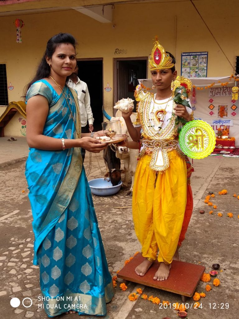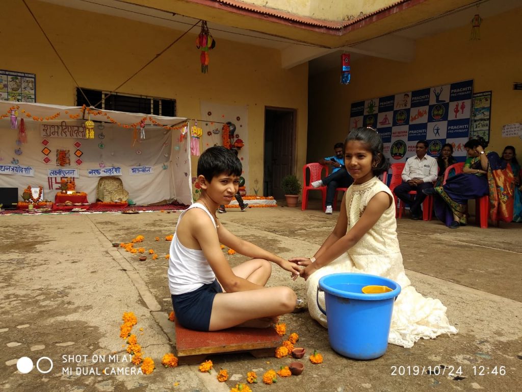 प्रसंगी शाळेच्या प्रांगणात वसुबारस, धनत्रयोदशी, नरक चतुर्दशी, बलिप्रतिपदा आणि भाऊबीज या दीपावली सणाच्या पाचही दिवसांचे महत्व मांडण्यासाठी शाळेच्या विद्यार्थ्यांनी विविध पथनाट्य सादर केली. यावेळी शाळेचे प्राचार्य अतुल देव, प्राचार्या भारती पंजाबी, संस्थेचे समन्वयक तुषार देवरे, वैभव सोनवणे यासह सर्व शिक्षक उपस्थित होते.