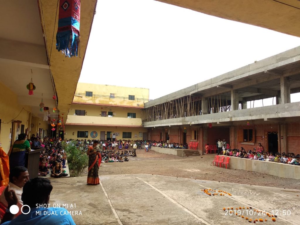 दरम्यान, साक्री शहर पंचक्रोशीतील भिल्ल वस्ती तसेच कोकले भिल्ल परिसरात आर्थिक दुर्बल घटक वसलेल्या परिसरात यावेळी कपडे व फराळ वाटप करण्यात आले. या उपक्रमाबद्दल परिसरातील लोकांनी समाधान व्यक्त केले. या कार्यक्रमाचे नियोजन शीतल सोनवणे तर छायाचित्रण नितीन राजपूत यांनी केले. या कार्यक्रमासाठी सुबक रांगोळी काढण्यात आली होती. कार्यक्रमाचे सूत्रसंचलन स्मिता नेरकर यांनी केले. कार्यक्रम यशस्वीतेसाठी सर्व शिक्षक व शिक्षकेतर कर्मचारी यांनी परिश्रम घेतले.