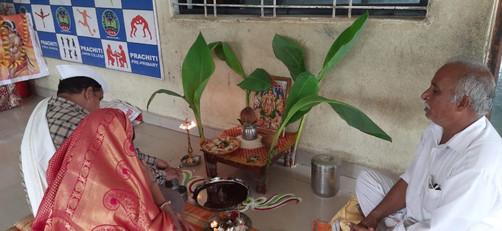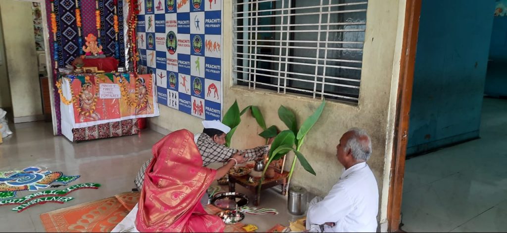 चौफेर न्यूज – आज दि. 28/08/2020 रोजी वार शुक्रवार शाळेच्या गणपतीच्या सातव्या दिवशी गणपती विसर्जन यानिमित्तने शाळेत आज सत्यनारायण व महाप्रसादाचे आयोजन करण्यात आले. सत्यनारायण पुजेचा मान शाळेचे व्यवस्थापक श्री. राहूल पाटील सर व सौ. भारती पाटील मॅडम यांना देण्यात आला.