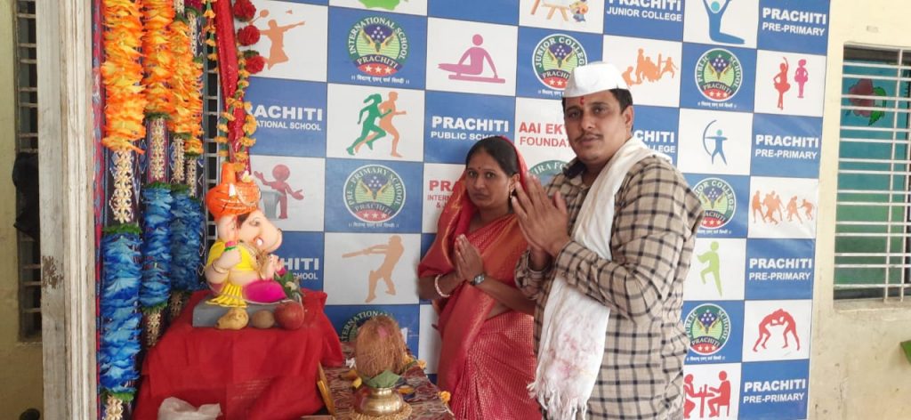 हा श्लोक म्हणून शाळेचे चेअरमन श्री. प्रशांत भिमराव पाटील साहेब व प्रचिती पब्लिक स्कुल पिंपळनेर यांची उत्तरोत्तर प्रगती व्हावी व विघ्नहर्त्यांस प्रार्थना करून विघ्न जाऊ दे व सुख येऊ दे असे गणपती बाप्पाला हात जोडून सांगण्यात आले. अशाप्रकारे शाळेचे शिक्षक व शिक्षकेत्तर कर्मचारी यांच्या उपस्थितीत गेल्या सात दिवसापासून गणपती स्थापनेपासून ते विसजनापर्यंत कार्यक्रम आनंदाने साजरा करण्यात आला. कोरोनाच्या प्रादूर्भावामुळे विद्यार्थ्यांची उविण शाळेला भासवली तरी विद्यार्थ्यांनी शाळेत लवकर यावे अशी गणेशाकडे प्रार्थना करण्यात आली. अशाप्रकारे कार्यक्रमाची सांगता महाप्रसादाने झाली.