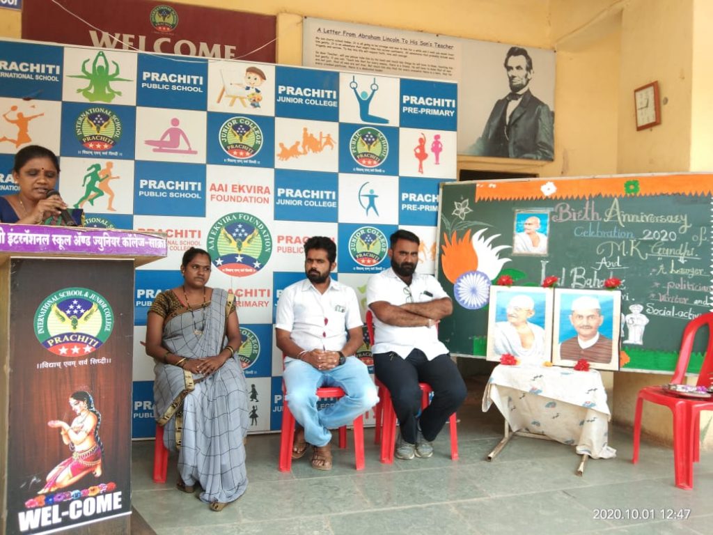 चौफेर न्यूज – प्रचिती इंटरनॅशनल स्कूल येथे महात्मा गांधीजी व लालबहादूर शास्त्री यांच्या जयंती निमित्ताने महात्मा गांधी व लालबहादूर शास्त्री यांच्या प्रतिमेचे पूजन करण्यात आले.या कार्यक्रमास प्राचार्या सौ.वैशाली लाडे व्यवस्थापक श्री.तुषार देवरे व श्री. वैभव सोनवणे यांच्या हस्ते करण्यात आले.या प्रसंगी शाळेचे सहकारी शिक्षक श्री.रावसाहेब सावळे यांनी गांधीजींच्या जीवन परिचय व त्यांच्या कार्याविषयी माहिती देताना सांगितले की, महात्मा गांधी जनसेवेची प्रत्यक्ष मूर्ती त्यागाची साकार प्रतिमा आणि देशासाठी प्राणार्पण करणारे सच्चे सैनिक असून लोकांनी त्यांना बापू तर विश्वाने त्यांना महात्मा इतिहासकारांनी त्यांना राष्ट्रपिता उपाधी दिली.असे मत व्यक्त केले.तसेच प्राचार्या सौ. वैशाली लाडे यांनी महात्मा गांधीजींच्या सत्याचे प्रयोग या आत्मकथेतून सर्व मानवास प्रेरणा मिळते व अनेकांच्या जीवनात ही परिवर्तन घडून आले व गांधीजींच्या आदर्शावर अनेक लोक मार्गक्रमण करतात. गांधीजींच्या सत्याचे प्रयोग ही आत्मकथा गांधीजींच्या जीवनाचा आरसा आहे व गांधीजी सत्य अहिंसेचे पुजारी होते.तसेच लालबहादूर शास्त्री यांच्या जीवन कार्याविषयी माहिती विशद केली. कार्यक्रमाचे सूत्रसंचालन सौ. स्मिता नेरकर यांनी केले व फलक लेखन श्री.मोहन गावित यांनी केले.या कार्यक्रमास शाळेचे सर्व शिक्षक वृंद व इतर कर्मचारी वर्ग उपस्थित होते.