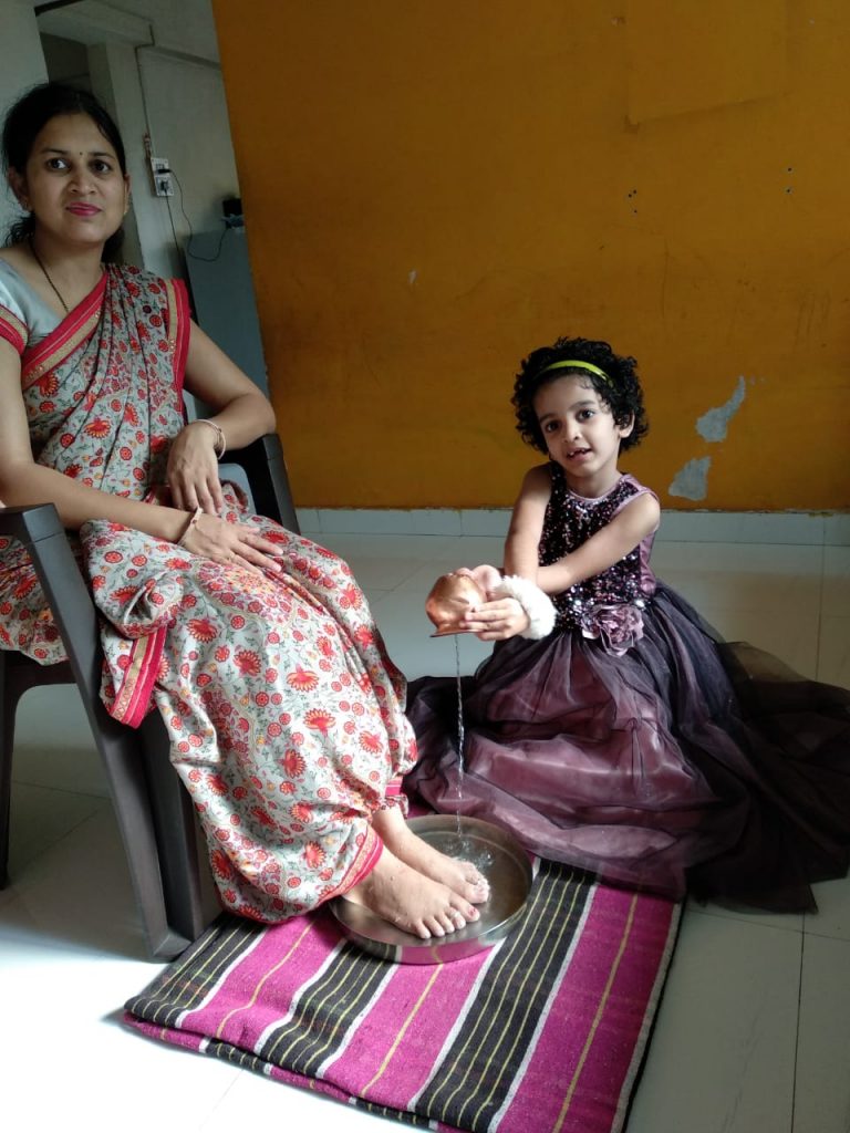 मातेला ईश्वर स्थानी मानून, एकाच वेळी सर्व विद्यार्थ्यांकडून आपल्या आईचे पाद्यपूजन करण्यात आले. तिचे औक्षण करून, तिलक लावून तिच्या कडून आशीर्वाद घेण्यात आले. सर्व विद्यार्थ्यांनी आपापल्या शब्दात कृतज्ञता व्यक्त करताना स्व:हस्ताक्षरात शुभेच्छापत्र बनवून आईस दिली. सर्व विद्यार्थी आणि मातांनी आदर पूर्वक सहभाग घेतला.